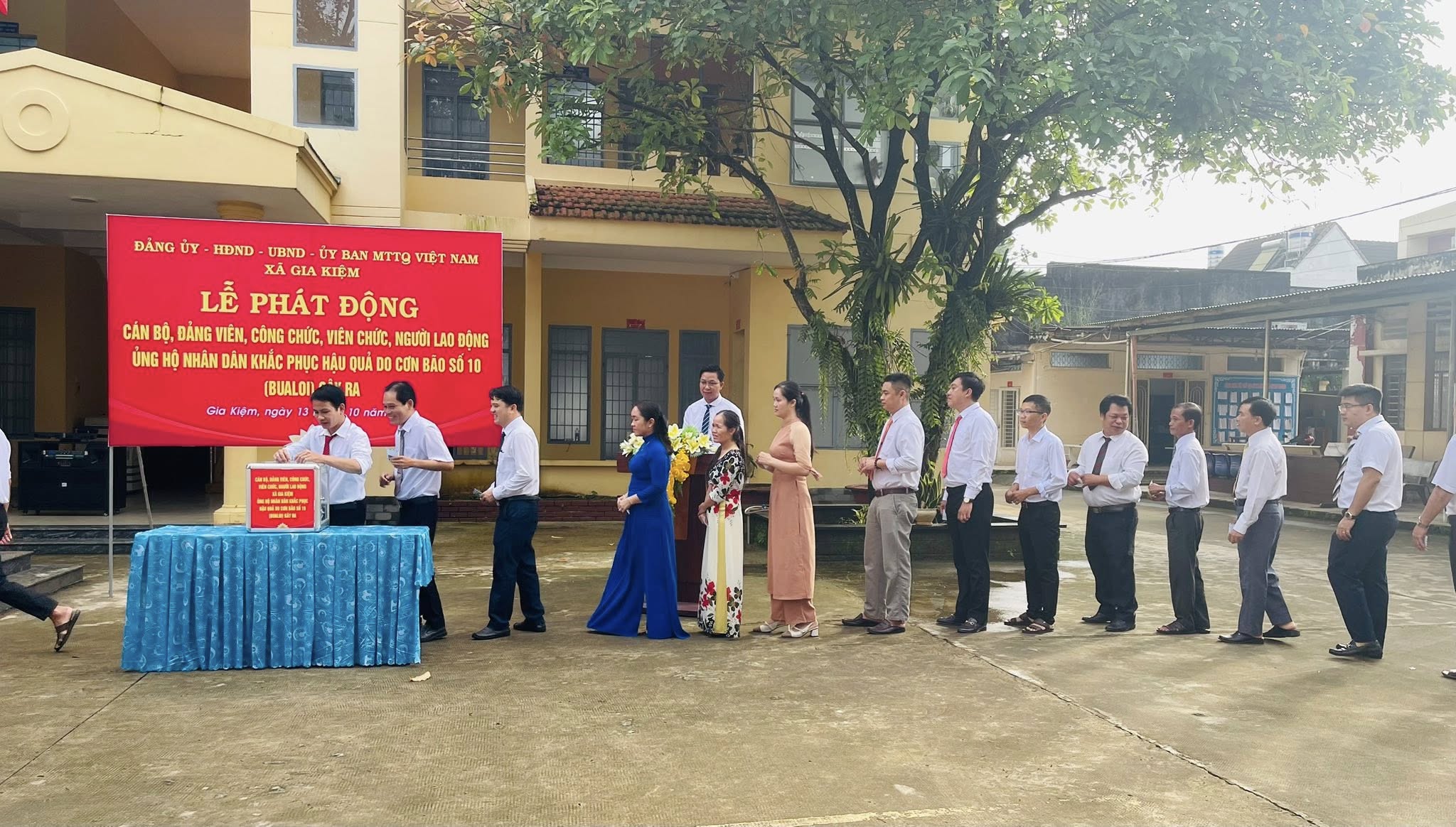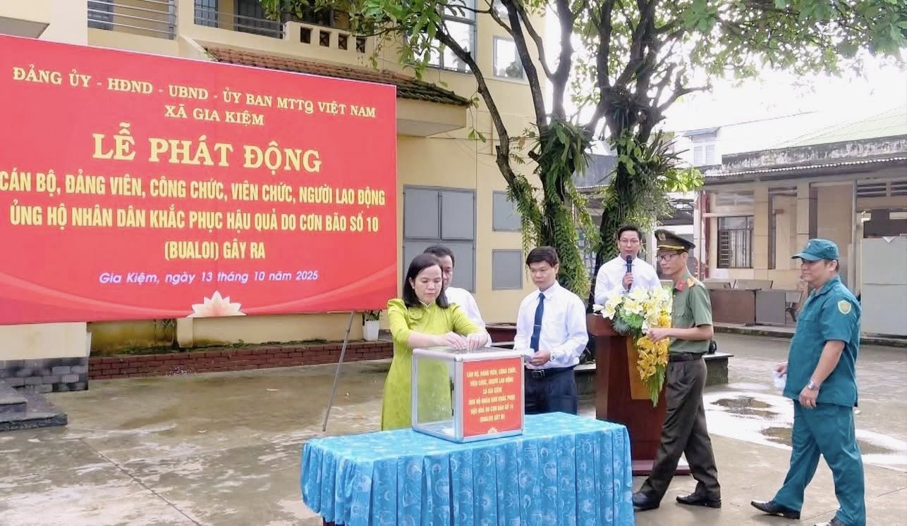 Sáng 13/10/2025, Đảng ủy – HĐND – UBND – Ủy ban MTTQ Việt Nam xã Gia Kiệm tổ chức Lễ phát động ủng hộ đồng bào các tỉnh phía Bắc khắc phục hậu quả do bão số 10 (Bualoi) và bão số 11 (Matmo) gây ra.